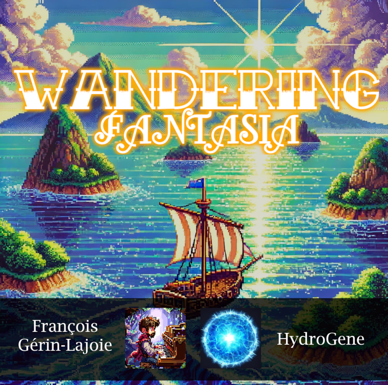 Wandering Fantasia is a joint effort between François and game developer and composer HydroGene. The music is inspired by role-playing and adventure video games for the SNES. It depicts different environments that a band of heroes may encounter during their travels.